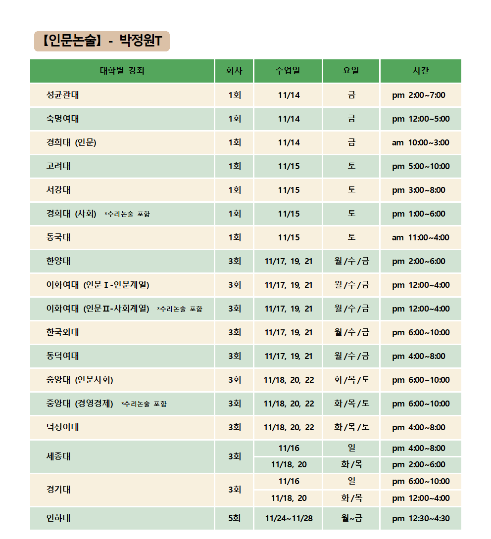 논술 파이널 시간표